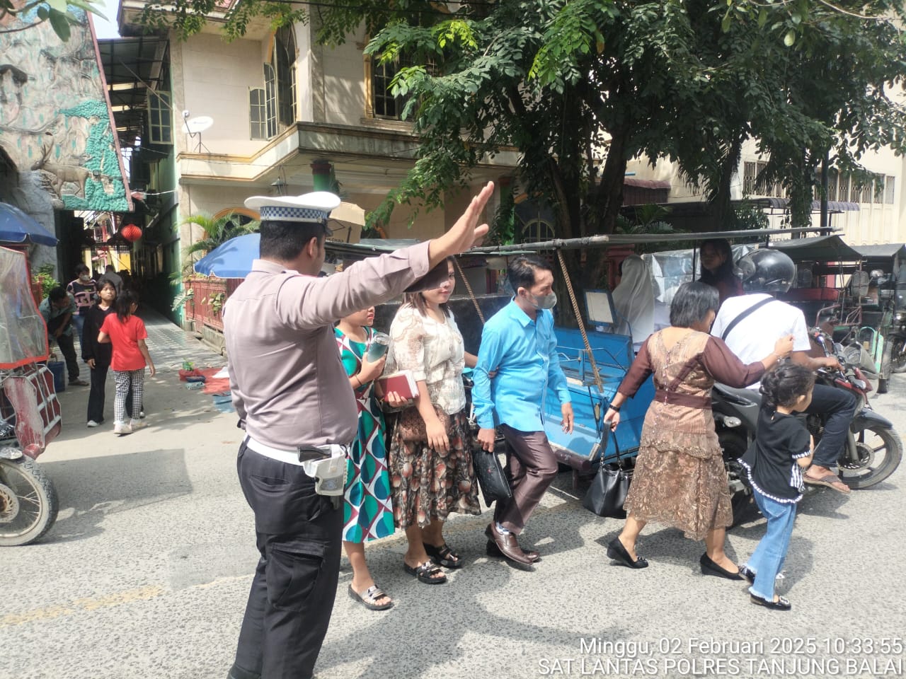 Tanjungbalai | Presisi24jam.com-Dalam rangka pengamanan ibadah Gereja Hari Minggu, personel Satlantas Polres Tanjungbalai menggelar kegiatan Pam...