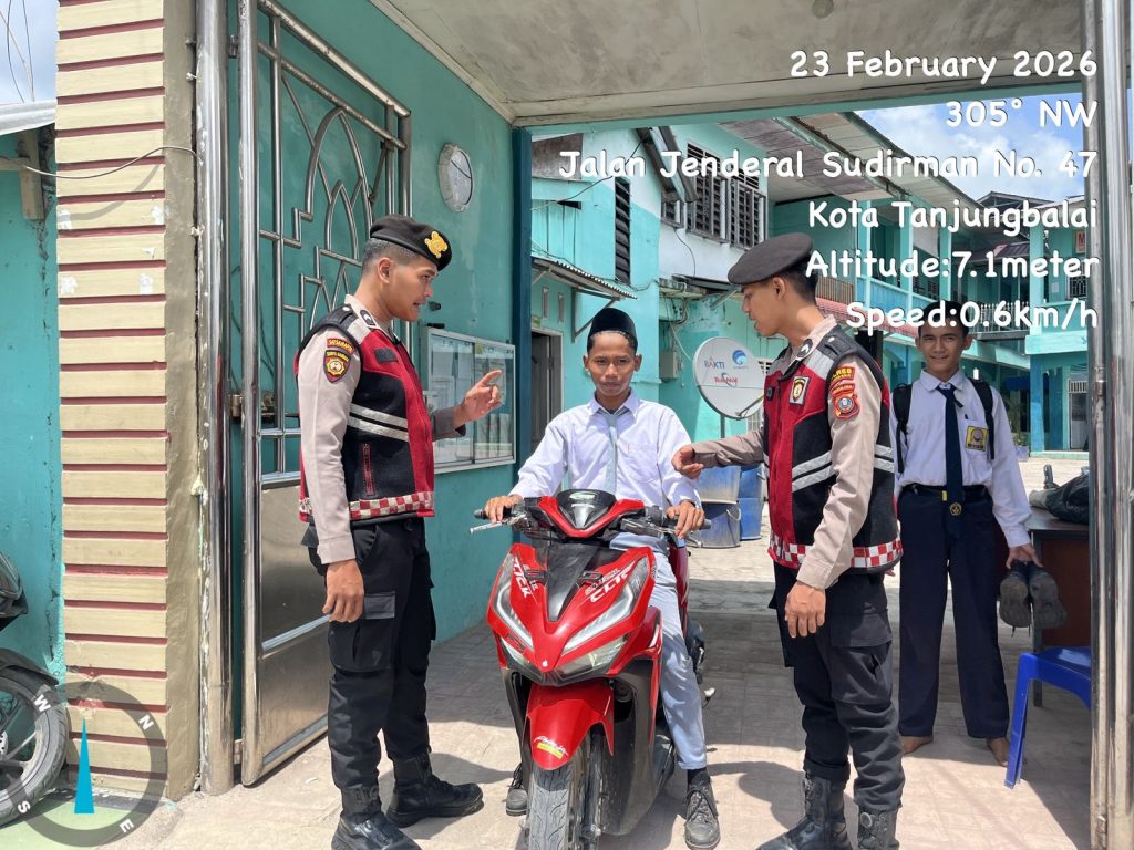 Tanjung Balai | Presisi24jam.com-Guna menciptakan suasana sekolah yang aman dan nyaman, Sat Samapta Polres Tanjung Balai melaksanakan kegiatan patroli dialogis dan sambang sekolah di Yayasan Perguruan Daar Falah, Senin (23/2/2026)