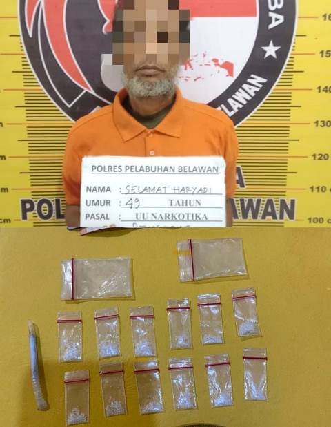 Dalam aksinya petugas satpam narkoba polres pelabuhan Belawan memboyong Tersangka yang diamankan yakni Selamat Haryadi (49), warga setempat.