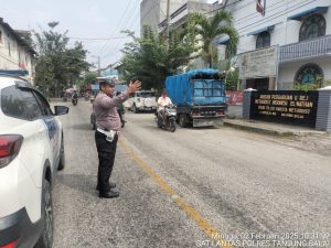 Tanjungbalai | Presisi24jam.com-Dalam rangka pengamanan ibadah Gereja Hari Minggu, personel Satlantas Polres Tanjungbalai menggelar kegiatan Pam Jalur Lalu Lintas di sejumlah gereja, Minggu (2/2/2025) sekitar pukul 09.00 Wib.