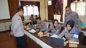 Tampak hadir Kasikum AKP S.Sagala. SH, Kasi propam AKP Haposan Sialagan, Kasiwas AKP Ahmad Ridwan, SH, Kasi Humas Iptu Agustina Triyadewi, Kasubbag Dalgar Bag Ren AKP Sri Surtiyati, Kasubbag Strajemen Bag Ren AKP Agus Hendrichan, Kasubbag Dalpers Bag SDM AKP Jhon Harno Purba, SH, Kasubbag Dalops AKP B.R. Simanjuntak, KBO Sat Intelkam Ipda Saji dan Kbo Sat Lantas Ipda Syawal Nasution.( Abar)