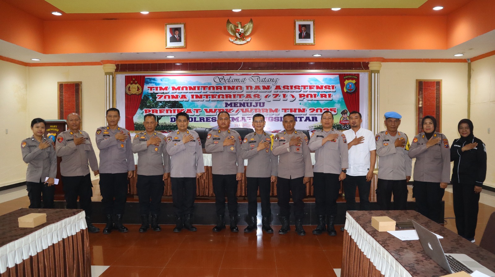 Siantar | Presisi24jam.com-Kapolres Pematangsiantar AKBP Yogen Heroes Baruno SH. SIK diwakili Kabag Ren Kompol Hilton Marpaung, S.Sos menerima kunjungan kerja (Kunker) Tim Monitoring dan Asistensi Zona Integritas (ZI) Polri Menuju Predikat WBK/WBBM Tahun 2025 bertempat di Aula Polres Pematangsiantar pada hari Selasa (21/1/ 2025) sekira pukul : 09.00 Wib.