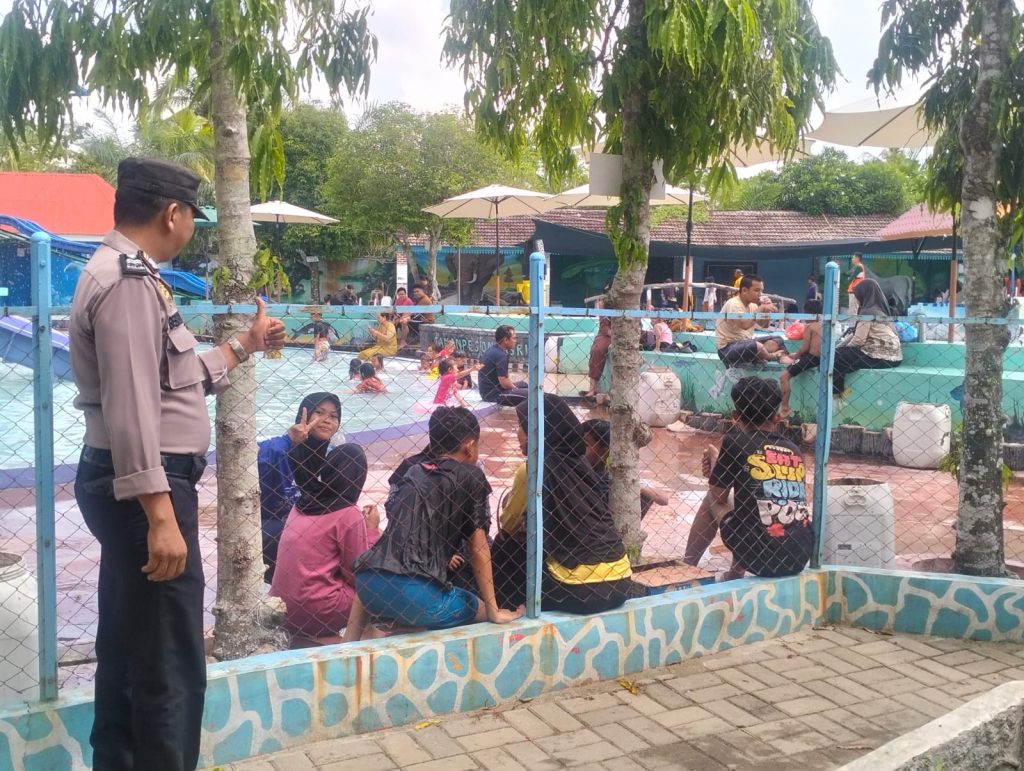 Dalam giat tersebut, personel kepolisian—Aiptu Golpriet Siregar dan Bripda Samson Epa Frans S., SH—tampak aktif berkeliling memberikan imbauan kepada orang tua. Petugas mengingatkan agar para orang tua tidak lepas pengawasan terhadap anak-anak, terutama saat berada di area kolam dalam.
