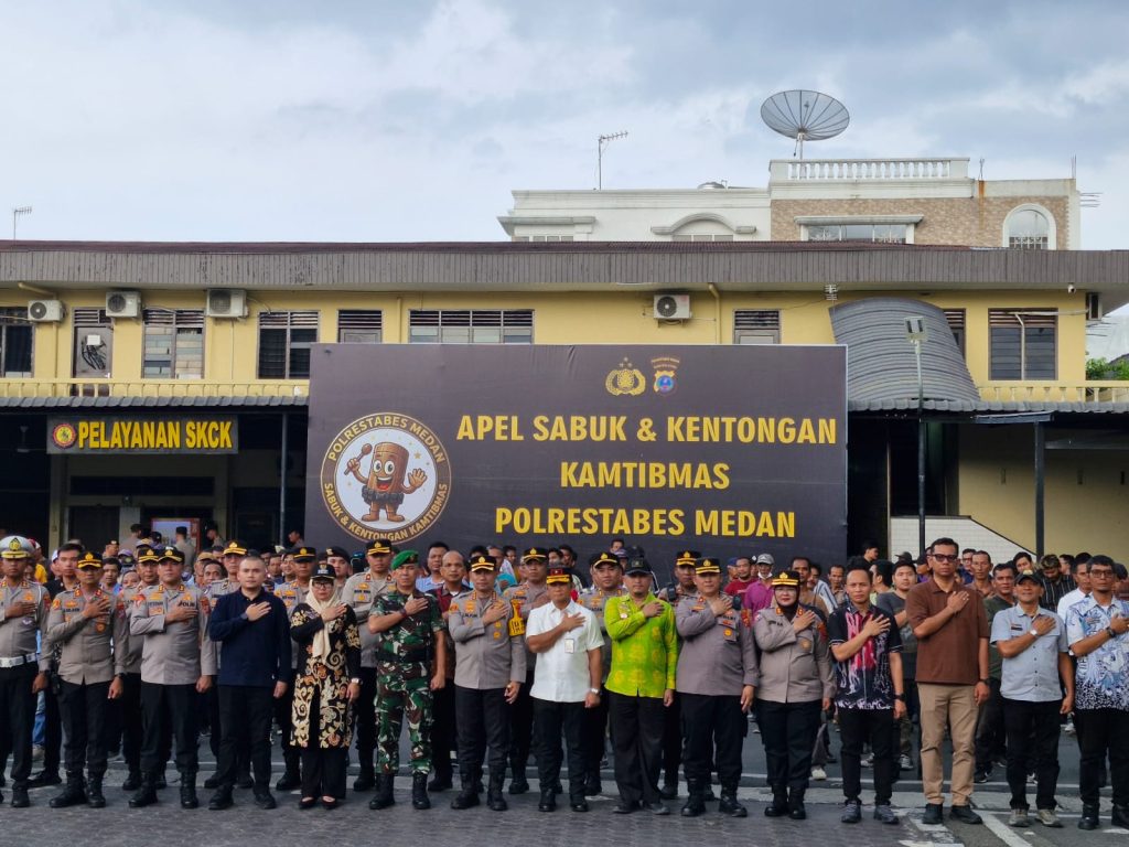 Medan | Presisi24jam.com-Polrestabes Medan menggelar Apel Sabuk Kamtibmas dan Kentongan Kamtibmas yang dipimpin langsung Kapolrestabes Medan Kombes Pol Dr. Jean Calvijn Simanjuntak, S.I.K., M.H., di Lapangan Apel Mapolrestabes Medan, Jalan H.M. Said No. 1 Medan, Jumat (27/3/2026). Kegiatan ini dirangkaikan dengan Halal Bihalal Idul Fitri 1447 H sebagai bagian dari penguatan keamanan lingkungan dan kebersamaan masyarakat.
