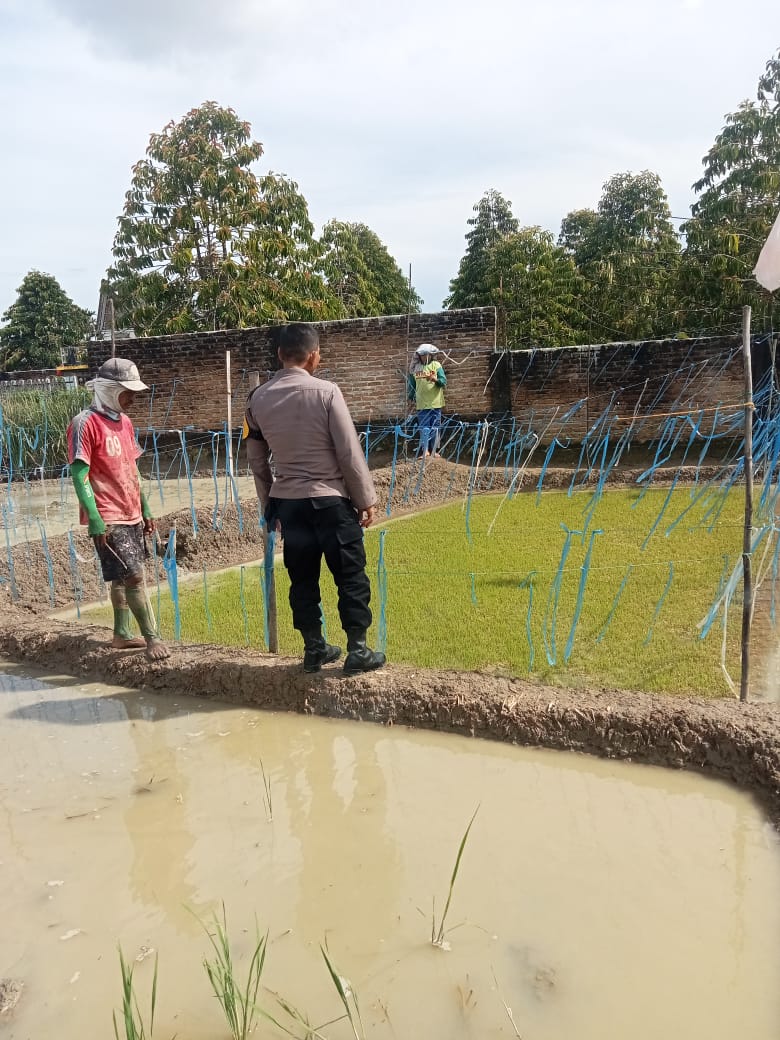 Siantar | Presisi24jam.com-Bhabinkamtibmas Kelurahan Marihat Jaya Aipda Erick F Marbun anggota Polsek Siantar Marihat Polres Pematangsiantar melaksanakan sambang kepada warga bernama Op. Luga Sinaga boru Panjaitan saat menanam padi di hamparan persawahan Jalan Bahkora II Kelurahan Marihat Jaya Kecamatan Siantar Marimbun Kota Pematangsiantar.