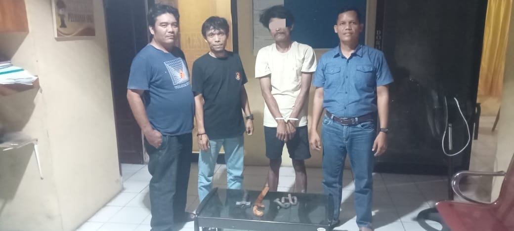 Mengetahui itu Kanit Rekrim Polsek Siantar Martoba Ipda Juhandya Malau SH bersama tim mengamankan pelaku H besrta barang bukti 1 buah karung plastik warna putih berisikan 112 buah besi pengikat kereta api aktif / besi penrol, 2 helai kain, 1 buah marti serta 1 buah parang bersarung dan bergagang kayu yang pada gagang kayu ada bercak darah.